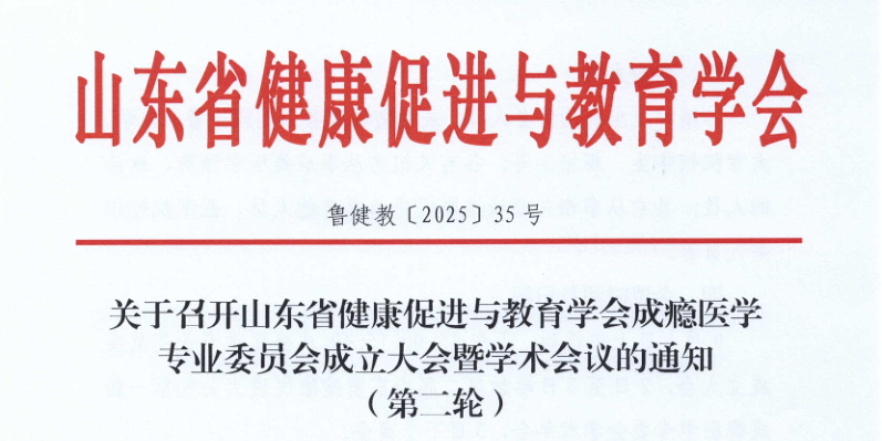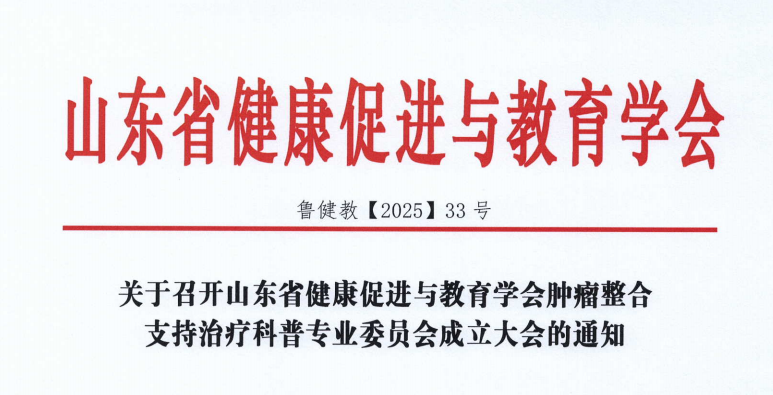 各相关单位:为全面落实健康中国行动相关要求,推动健康山东建设,持续完善构建肿瘤整合支持治疗与科普平台,提升公众健康素养水平。经研究,定于2025年9月19-20日召开山东省健康促进与教育学会肿瘤整合支持治疗科普专业委员会成立大会,现将有关事宜通知如下: