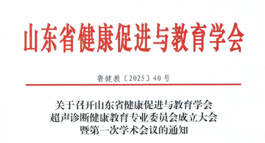 各相关单位:为进一步提高我省超声医学专业水平,促进我省健康教育事业发展,经研究,定于2025年9月下旬在济南市召开山东省健康促进与教育学会超声诊断健康教育专业委员会成立大会暨第一次学术会议,届时将邀请国内知名专家进行学术讲座,现将会议的有关事项通知如下:关于召开山东省健康促进与教育学会超声诊断健康教育专业委员会成立大会的通知.docx关于召开山东省健康促进与教育学会超声诊断健康教育专业委员会成立大