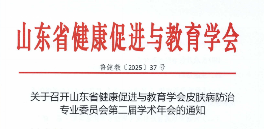 各相关单位:为进一步加强我省皮肤疾病防治专业的学科建设,不断提升相关专业人员特别是基层皮肤病科从业人员的预防、诊断、治疗等工作能力,经研究,定于2025年10月下旬在济宁召开山东省健康促进与教育学会皮肤病防治专业委员会第二届学术年会,同期举办“皮肤病临床治疗案例及健康科普征文”活动。现将有关事项通知如下:关于召开山东省健康促进与教育学会皮肤病防治专业委员会第二届学术年会的通知.doc关于召开山东省