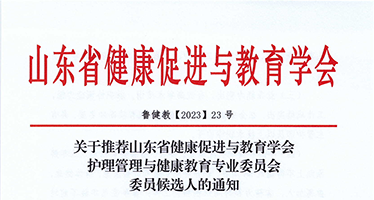 各有关单位:为深入贯彻落实《进一步改善护理服务行动计划(2023-2025 年)》不断满足人民群众多元化护理服务需求,进一步改善护理服务,持续提升患者就医体验,促进护理工作高质量发展,经山 东省健康促进与教育学会同意,拟成立山东省健康促进与教育学会护理管理与健康教育专业委员会。现将有关事宜通知如下: 附件下载:关于推荐山东省健康促进与教育学会护理管理与健康教育专业委员会委员候选人的通知关于