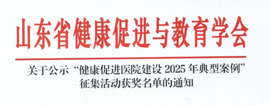 各有关单位:由山东省健康促进与教育学会主办的“健康促进医院建设2025年典型案例”征集活动历时近1个月,得到了广大医务工作者的积极响应。经我会组织专家组对案例盲审打分(取4位专家平均分),按照奖项设置比例要求,根据得分高低产生一等奖2个、二等奖5个、三等奖6个,以及优秀奖若干。现将“健康促进医院建设2025年典型案例”征集活动获奖名单予以公示。
