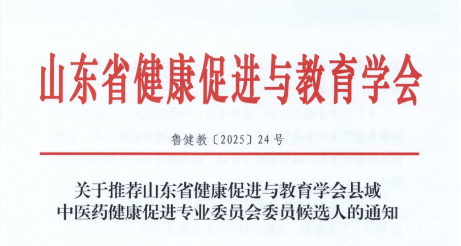 各有关单位:山东省健康促进与教育学会第一届理事会任期即将届满,依据《山东省社会团体换届选举工作指引》及《山东省健康促进与教育学会章程》等相关文件规定,学会第二届会员代表大会拟于2025年7月下旬召开,大会期间将选举产生新一届理事会。目前,学会已启动换届筹备工作,请各有关单位充分协商,认真履行民主程序,做好理事候选人推荐工作。现就有关事项通知如下:关于推荐山东省健康促进与教育学会第二届理事会理事候选