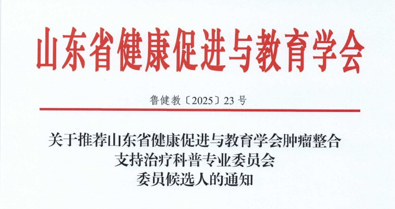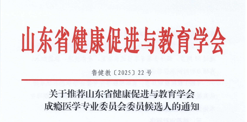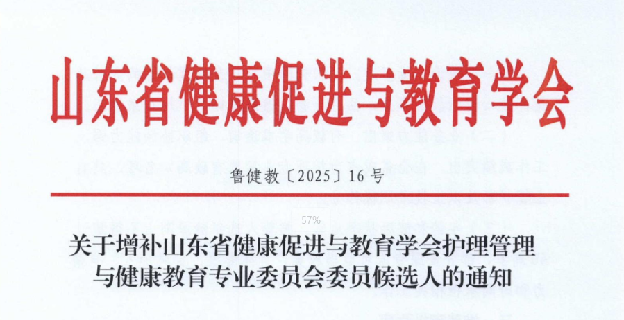 各有关单位:为进一步加强山东省健康促进与教育学会护理管理与健康教育专业委员会的组织建设,推动全省护理健康教育科学化、规范化发展,提升护理管理者科普服务能力,经研究,定于2025年6月举办山东省护理健康促进大会暨护理管理与学科发展交流会,同期增补山东省健康促进与教育学会护理管理与健康教育专业委员会委员,现将有关事宜通知如下: 关于增补山东省健康促进与教育学会护理管理与健康教育专业委员会委员候选人的通