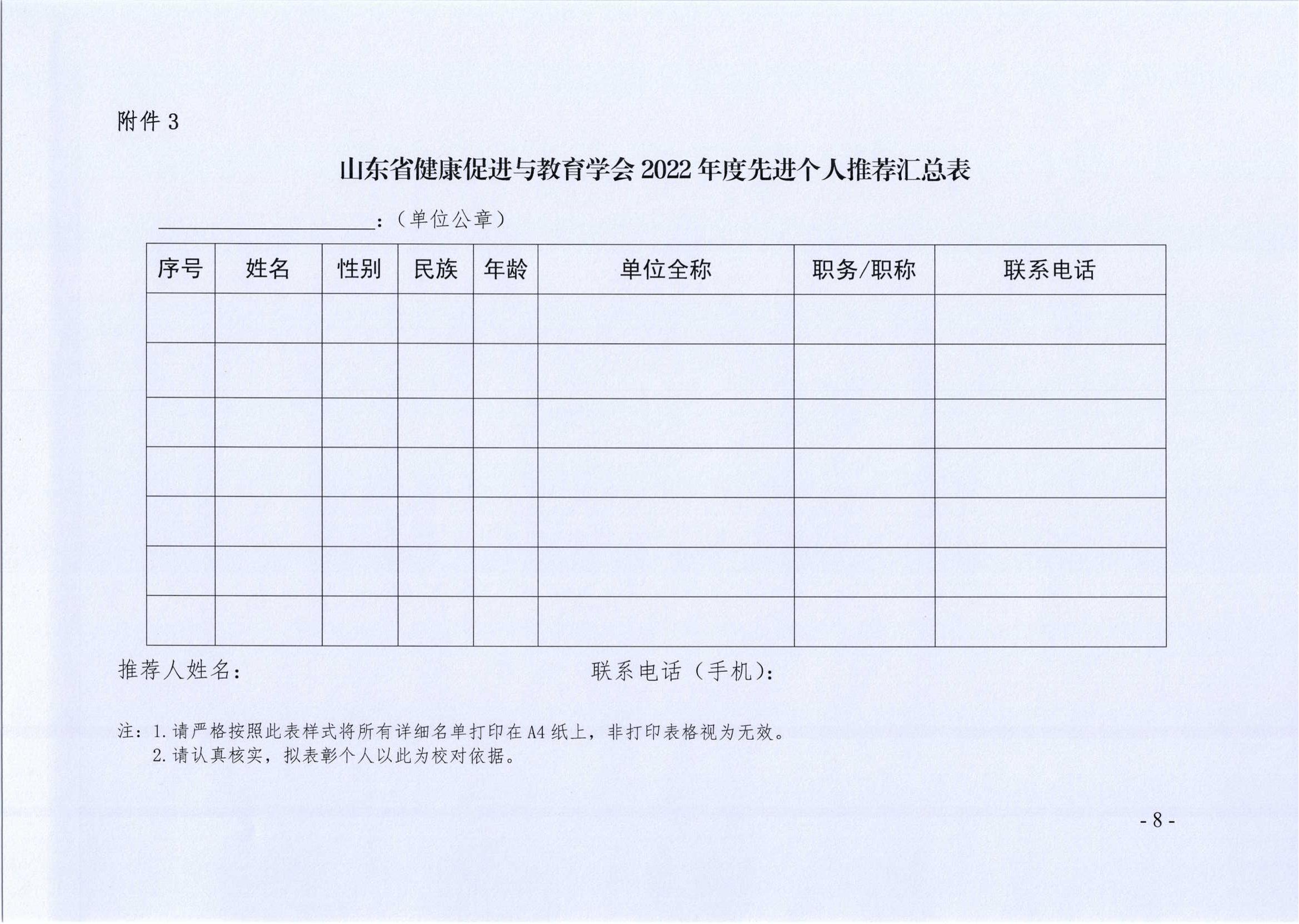 附件3 山东省健康促进与教育学会2022年度先进个人推荐汇总表