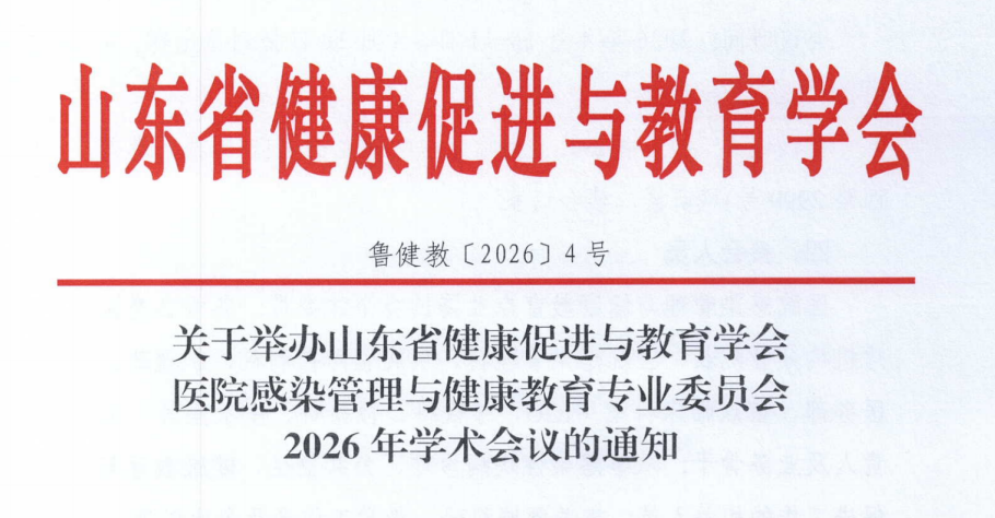 各有关单位:为进一步推动我省医院感染管理事业的发展,提升医疗机构感染防控与健康教育的整体水平,经研究,定于2026年4月10-11日,举办山东省健康促进与教育学会医院感染管理与健康教育专业委员会2026年学术会议,并增补部分委员。现将有关事项通知如下:关于举办山东省健康促进与教育学会医院感染管理与健康教育专业委员会2026年学术会议的通知.doc关于举办山东省健康促进与教育学会医院感染管理与健康教
