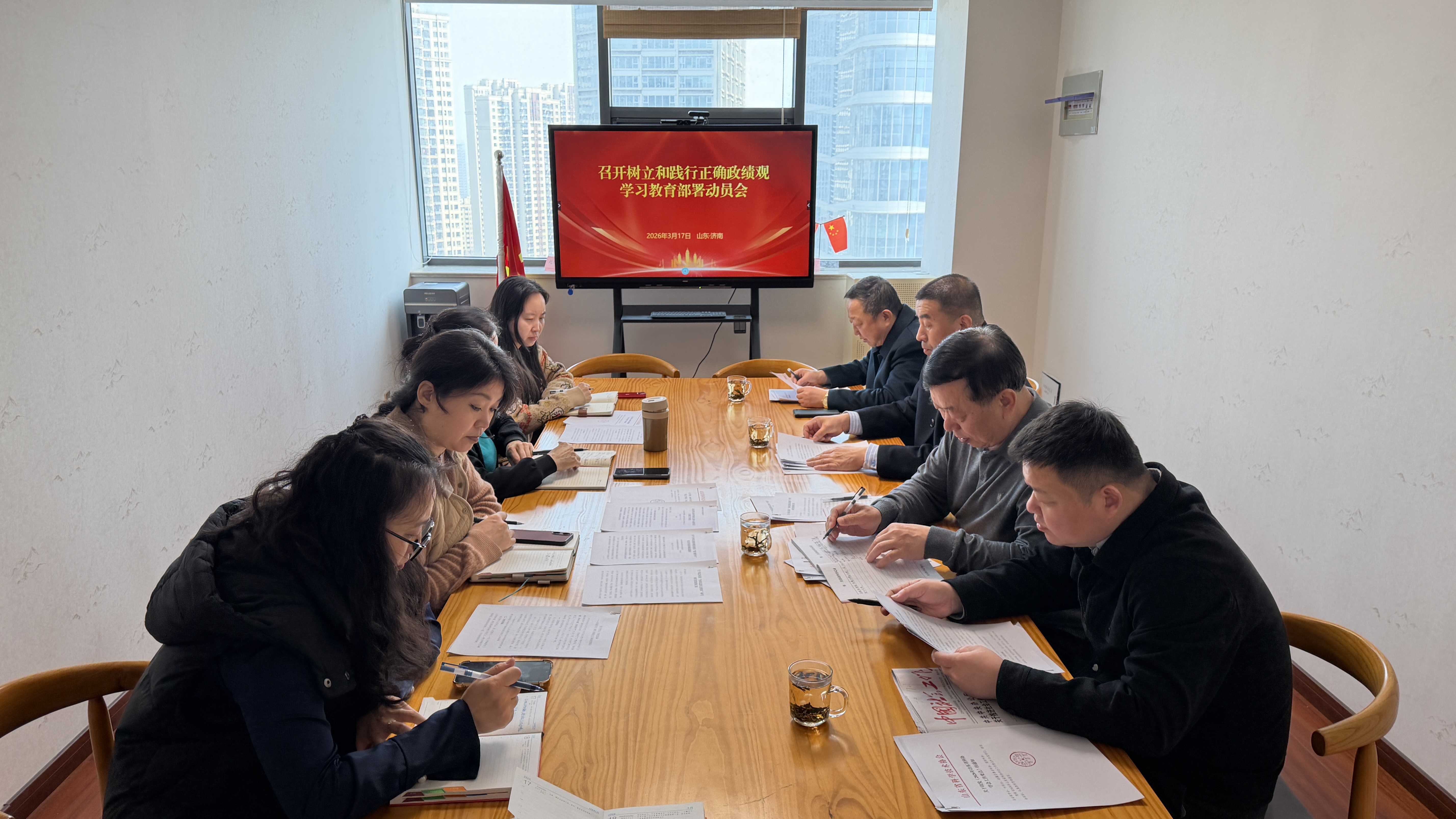 2026年3月17日,山东省健康促进与教育学会党支部召开树立和践行正确政绩观学习教育部署动员会,启动学会学习教育工作。学会会长彭春雷、副会长康佃民、党支部书记牛东、秘书长林东超及秘书处工作人员参加会议,会议由牛东书记主持。彭春雷会长要求,学会所有人员要牢牢把握“立党为公、为民造福、科学决策、真抓实干”的总要求,将16字总要求内化于心、外化于行,树立和践行正确政绩观。“十五五”开局之年,学会要从实际